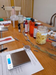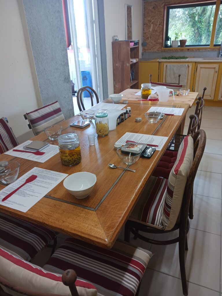 Mon travail se déploie autour de la création de cosmétique naturels : savons, baumes de soins, sirops des plantes, vinaigres aux fruits rouges, confitures, herbes de Provence.